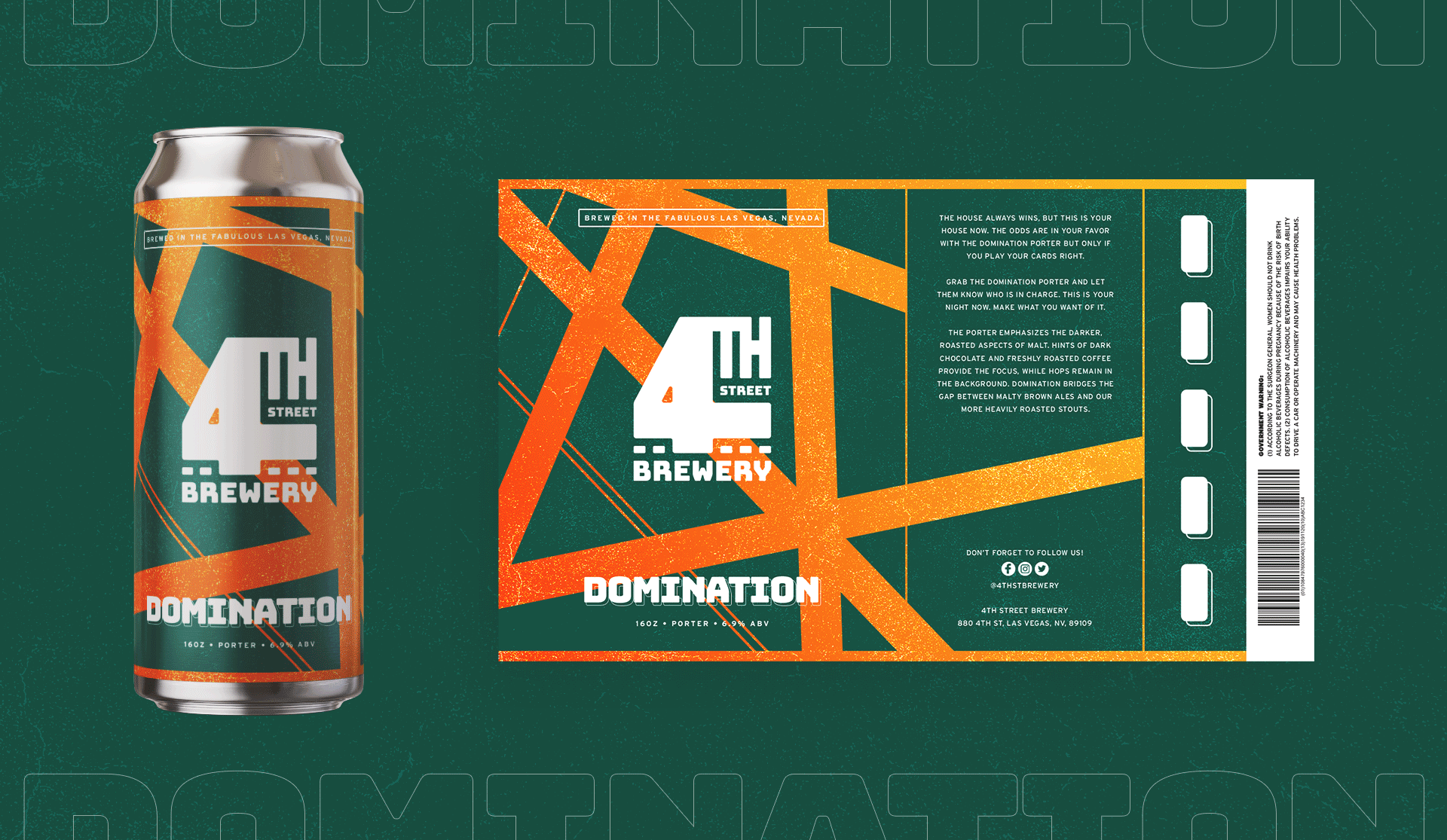 4th Street Brewery is a brand concept I created for a brewery in Downtown Las Vegas, NV. The brewery would ideally be located on 4th Street, minutes away from the fun of Fremont Street. The branding features vibrant line patterns and imagery to resemble an abstract look of a street map.