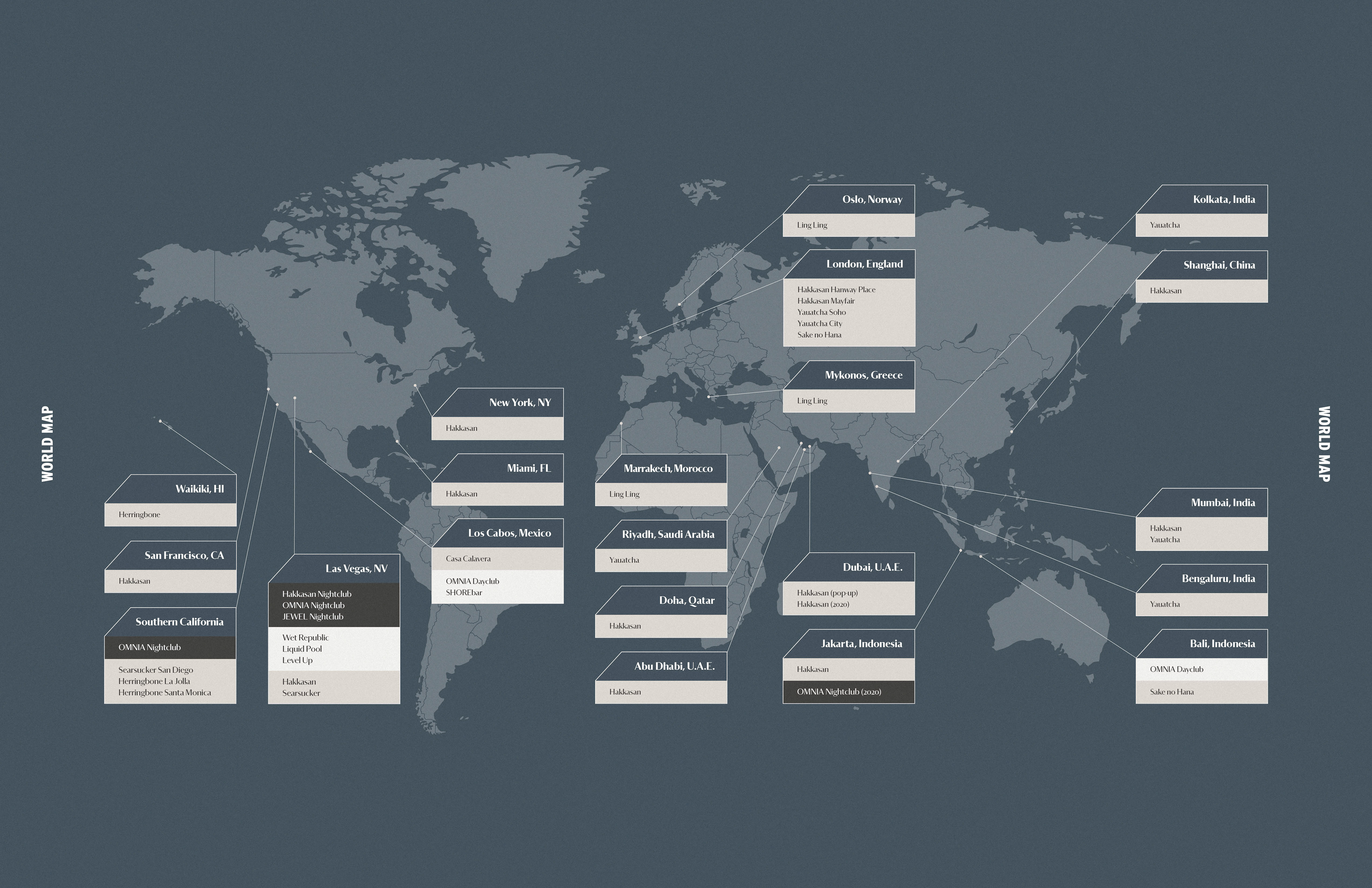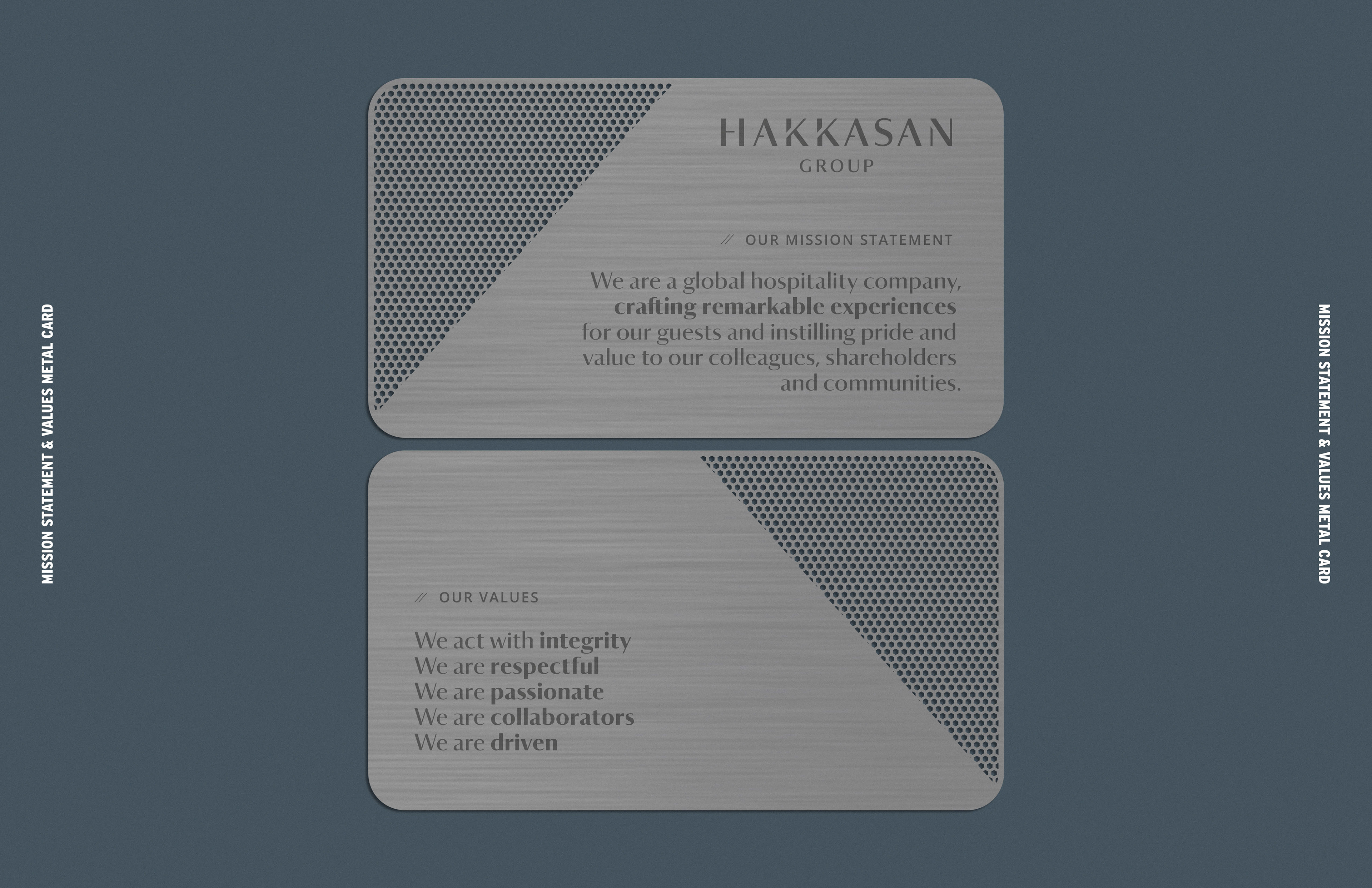 Hakkasan Group is a worldwide hospitality company with establishments across North America, Europe, Middle East, Asia and Africa. Its ‘brand first’ philosophy builds restaurant, nightlife, daylife and soon-to-open hotels, resorts and residences into world-class hospitality brands. Its restaurant portfolio includes Hakkasan, with 12 locations worldwide, Ling Ling, Yauatcha, Sake no Hana, Casa Calavera, Herringbone and Searsucker. Under the nightlife umbrella is Hakkasan, Omnia, Jewel and 1Oak Nightclub; and daylife brands include Wet Republic, Liquid, and Omnia. We were presented with a new logo, new colors and new fonts in the beginning of 2019. From there, the company asked me to take lead on the new corporate brand intently. The new look and feel consists of the new brand colors as well as the use of 48 degree angles (taken from the angle of the logo). *Intended for design purposes only. Information below may not be accurate/current.